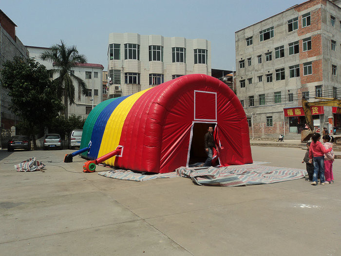 Durable Rainbow Tourist Inflatable Backyard Party Tent Oxford Cloth Quick Detail: The tent is made of oxford cloth material. The shape and color can be customed according to the client’s requirements. It is suitable for family, school, backyard, shopping mall and playing center and so on. Description: A) Material: oxford cloth with fireproof, durable, good tension, excellent peeling B) Shape can be custom. C) Packed with tarpaulin bag that is durable and keep inflatable item