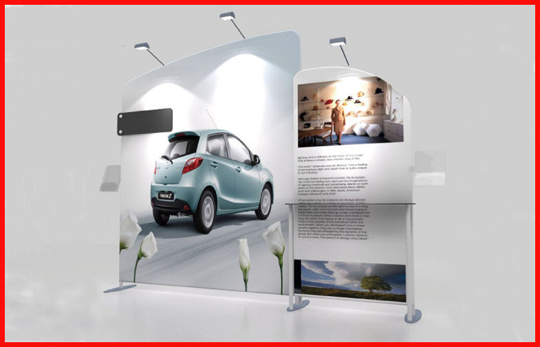 Bizim gerginlikte kumaş arka planında, görüntüler açılır, ince dijital baskı ile özelleştirilmiş boyutu fuar için herhangi bir ürün için bir tasarım harikası. Bu gerginlikte kumaş ekran kullanıcının sunulan sanat eserleri yazdırılır. Özel Tabela yüksek streç kumaş üzerine boya süblime baskı sürecinden geçer. Yüksek çözünürlüklü 720 DPI ile, parlak renkli ve ayrıntılı sergi özellikleri olduğunu.