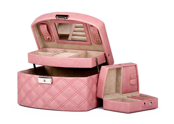 Giyilebilir akın kumaş astar ile kadınlar için PU deri büyük mücevher kutuları